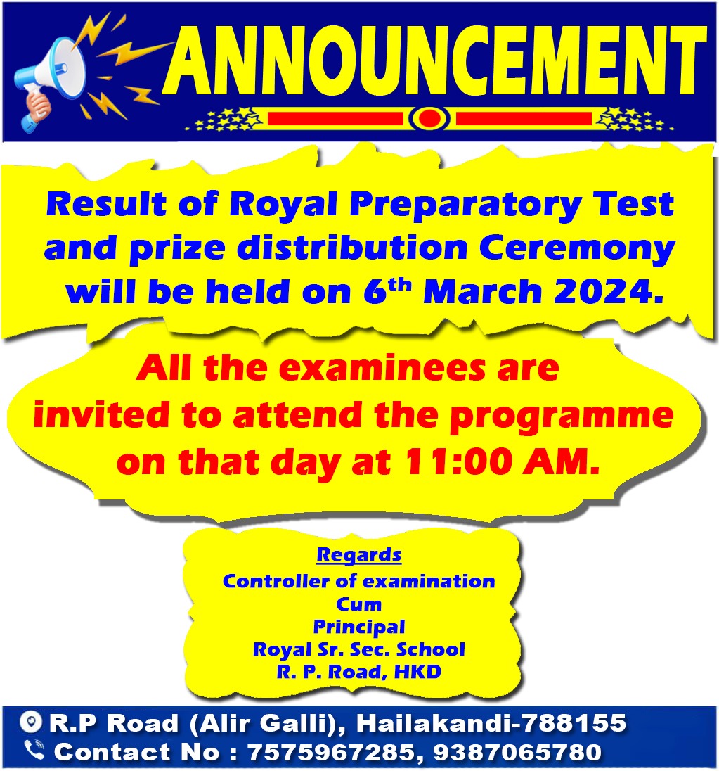 It gives me immense pride and pleasure to welcome you to ROYAL SENIOR SECONDARY SCHOOL (A Junior College of Science/ Arts/ Commerce), a newly established institution in Hailakandi district (Run by MONTESSORI EDUCATIONAL TRUST) for imparting quality concept-based and value-based education to your children.